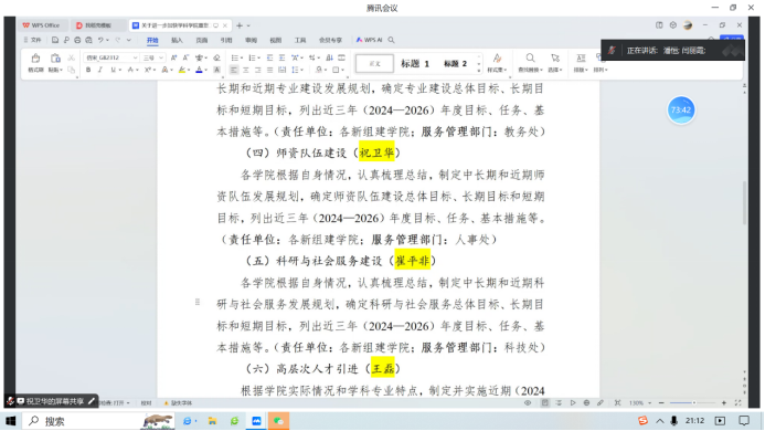 1月12日晚8点,我院召开williamhill英国中文第一次发展规划讨论会。此次会议以线上的形式召开,由副院长潘恒主持,副书记闫丽霞和部分骨干教师参加。