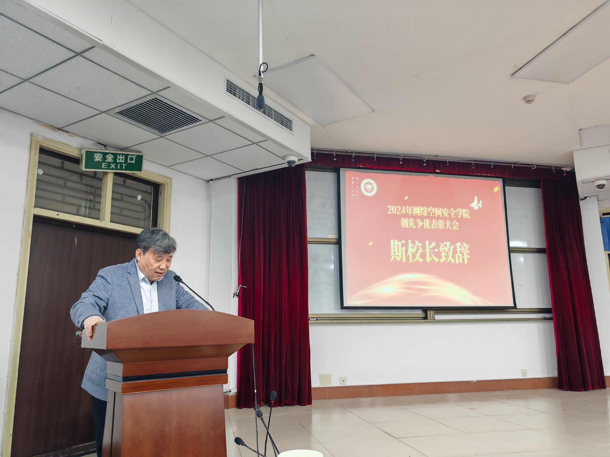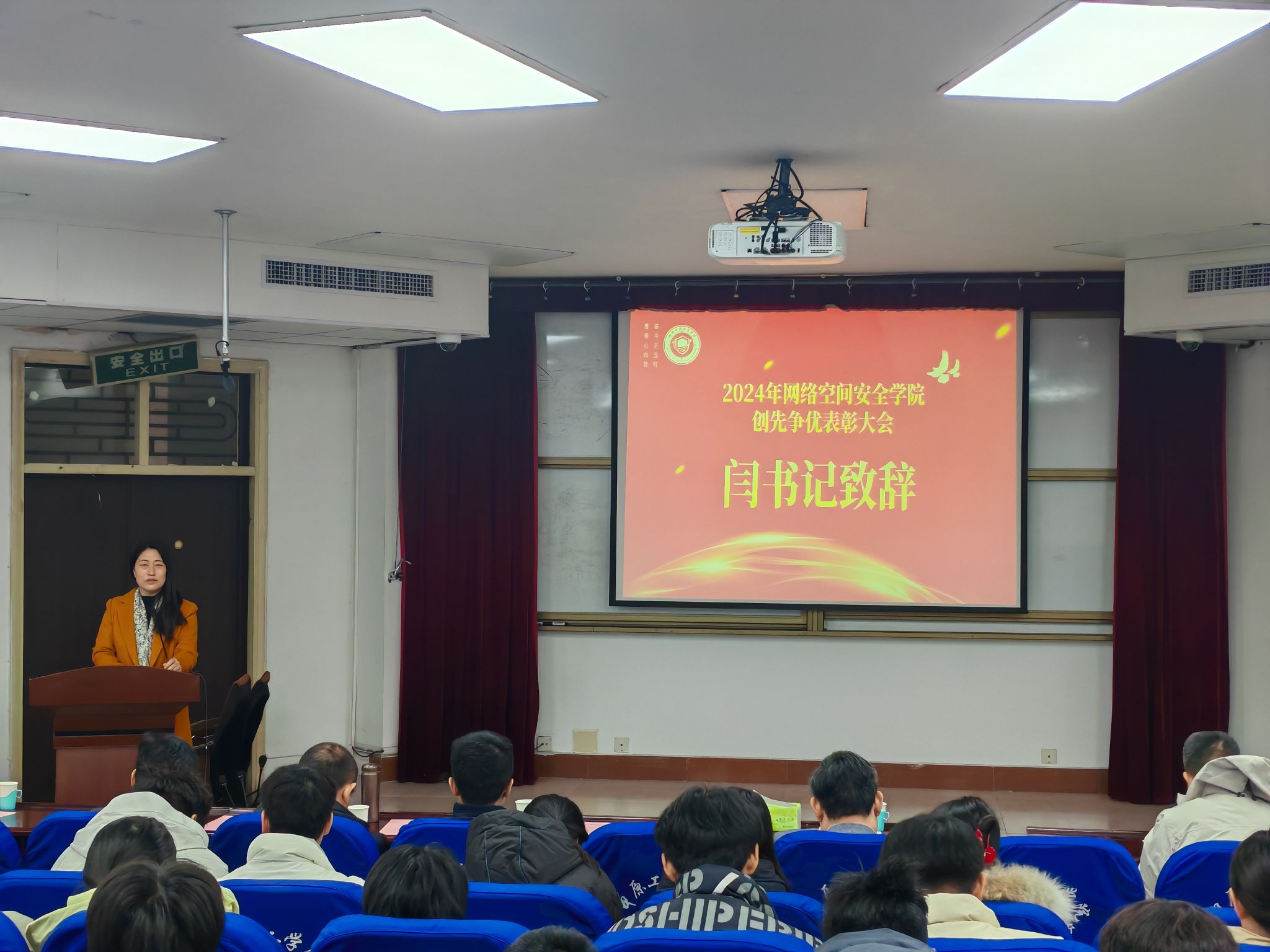 最后,闫丽霞作大会总结。她首先向受到表彰的师生表示热烈的祝贺;其次感谢网络安全相关专业老师的多年积淀,斯校长等教授专家在专业领域的高影响力,从时间长度和专业高度两个维度为学院发展奠定了坚实基础。最后,期望全院上下以此次表彰大会为契机,凝心聚力,力争来年再创新的成绩!