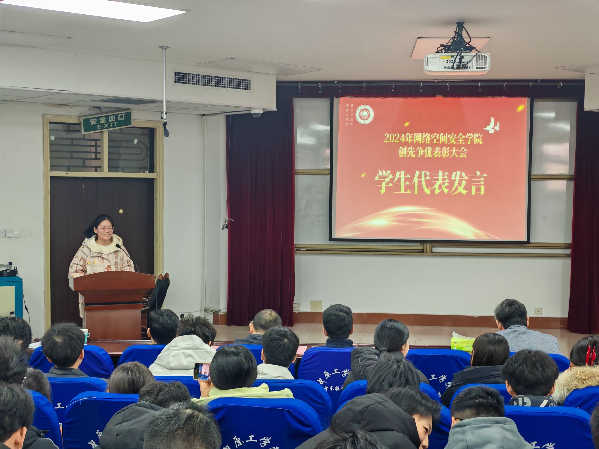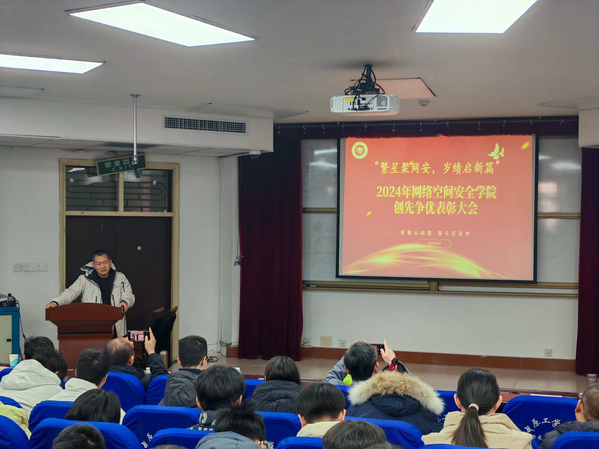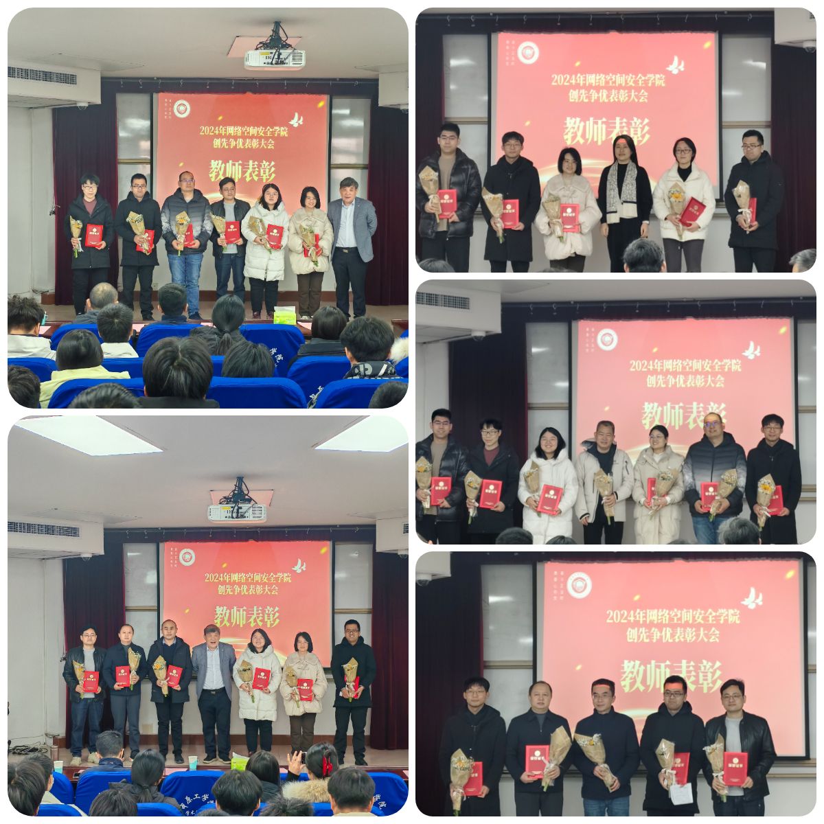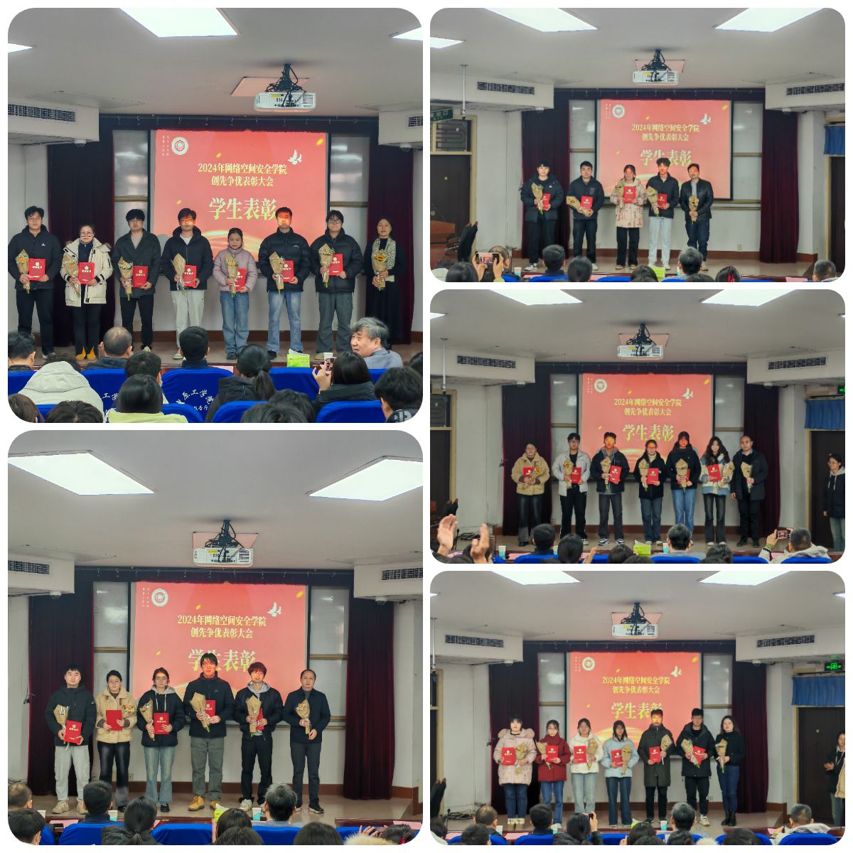 大会现场气氛欢快热烈,参会师生热情高涨,爆发出阵阵掌声。此次表彰大会的成功举办不仅肯定了全院师生2024年工作成绩,更鼓舞了全院上下干事创业的士气,营造了创先争优、积极向上的氛围。学院将以崭新的面貌,团结一致,不断提升学院的教学质量、科研水平和人才培养质量,共同开启2025年新篇章,为学校更名大学、网络空间安全事业的发展做出更大的贡献!