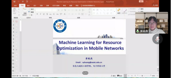 12月10日,应前沿信息技术研究院邀请,电子科技大学副教授黄晓燕做客我校前沿信息技术系列论坛并为我校师生做了题为“机器学习赋能移动网络资源优化”的讲座。本次论坛以腾讯会议的形式举行,由前沿信息技术研究院副院长潘恒教授主持,我院师生、相关学院的教师在线聆听了黄博士的精彩报告。