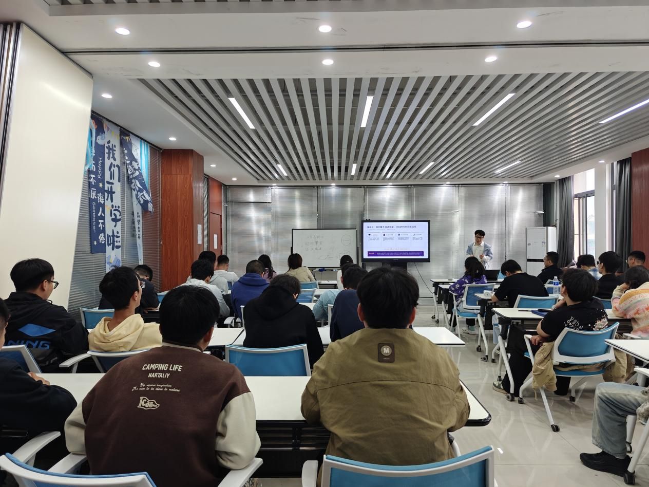论坛上,刘建美首先介绍了黎曼流形作为高维数据天然几何约束空间的核心概念,并指出正交矩阵流形、对称正定矩阵流形及格拉斯曼流形等在机器学习中的典型应用。他分析了经典黎曼优化方法面临的“维度灾难”困境:无论是梯度计算中的“维度诅咒”,还是二阶优化中逃离鞍点的计算瓶颈,经典算法在高维非凸问题上的效率都严重受限。随后,刘建美阐述了将量子计算嵌入黎曼优化各环节的技术路径,拆解了从理论优势到算法流程的转化框架,并介绍了混合量子-经典框架作为NISQ时代的现实选择。交流环节,师生围绕量子线路设计、实际应用场景等问题展开讨论。