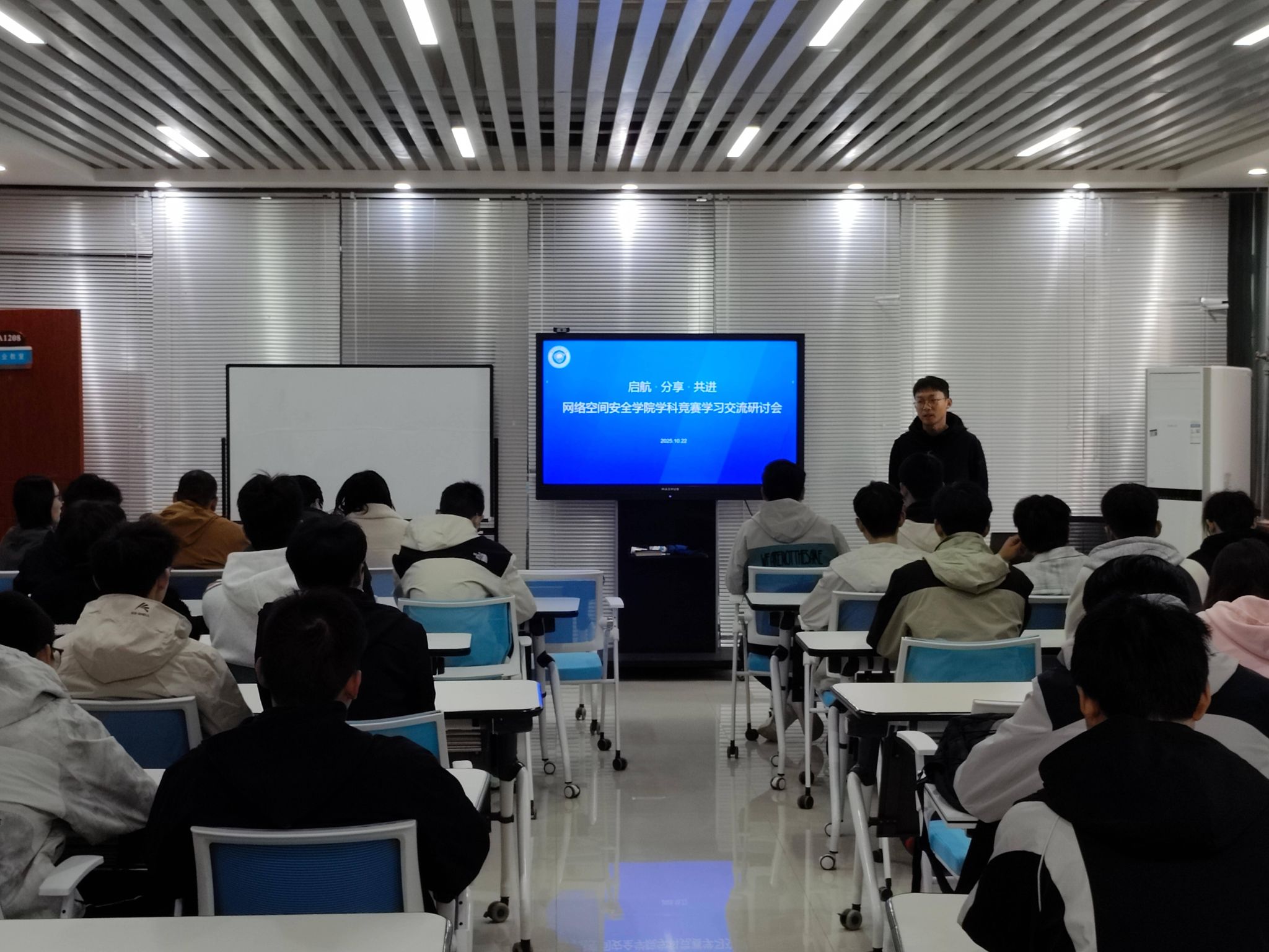 为激发新生学习热情,夯实学科竞赛基础,营造积极向上的学习氛围,10月22日上午十点,我院在3号组团楼A1208教室举行了以“启航·分享·共进”为主题的学科竞赛学习交流研讨会。学院执行院长潘恒、党总支副书记、副院长邢颖、教师代表曲晓东、刘济宗、牛利月、连晨晨以及2025级全体新生共同参与了此次交流研讨会。