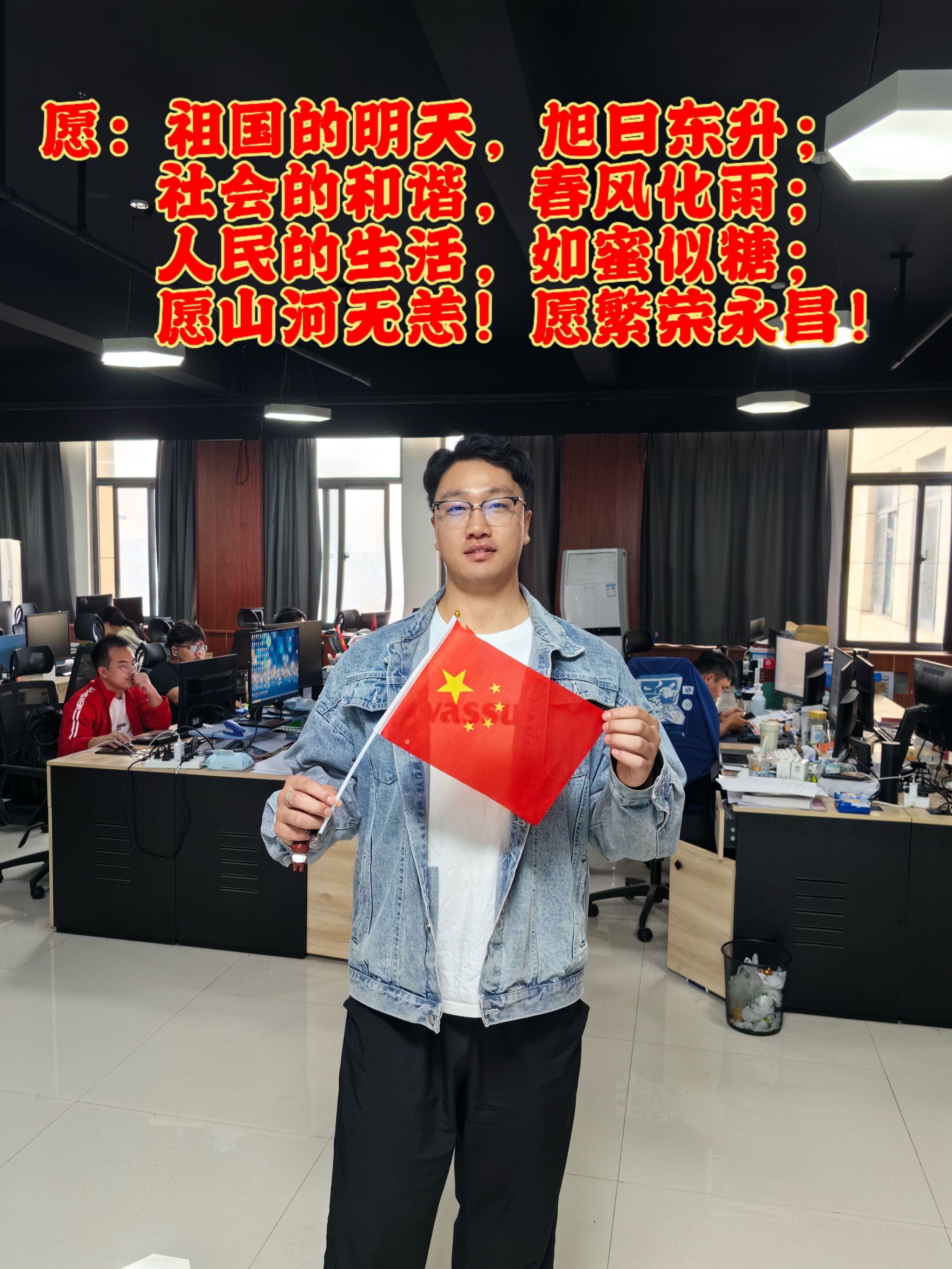 国庆节假期期间,学院充分调动广大师生参与热情,创新形式,多场景多角度与国旗进行了合影,并且送上了对祖国的祝福语和感言。作品中有展现祖国大好河山、地标建筑,也有体现家庭美满、尊老爱幼以及奋斗在一线的工作场所等。充分展现了师生风采,表达对祖国的热爱之情。