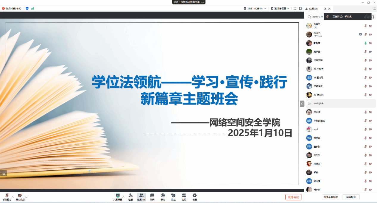 为贯彻落实国家教育政策,加强对《中华人民共和国学位法》的理解与认知,我院于2025年1月10日成功举办了《中华人民共和国学位法》学习普及宣讲活动。活动由学院学工办副主任郭政良主持,学院全体研究生参加。