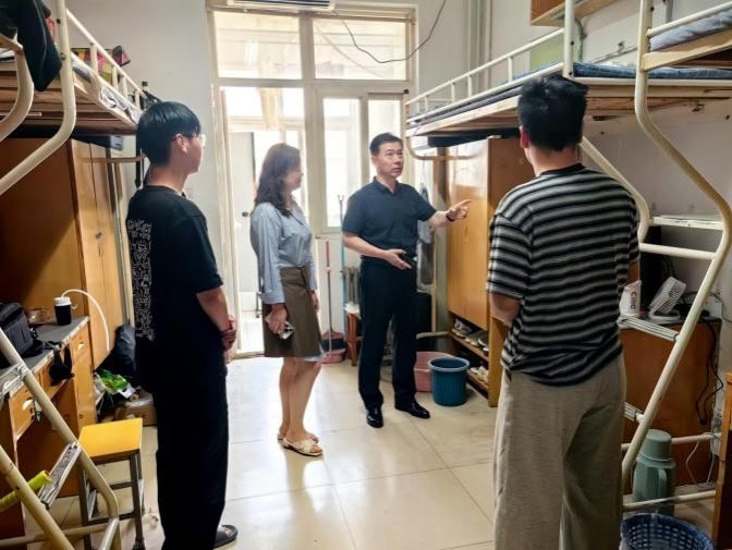 6月3日上午,学院党总支书记詹晋浩、副书记、副院长邢颖、学工办副主任郭政良及学生干部组成检查小组,对学生宿舍开展全面安全检查,重点排查违规电器、私拉电线、卫生死角等隐患。检查过程中与学生交流,观察其情绪状态,主动询问学习生活适应情况,了解睡眠质量、人际关系等,并给予同学们正向鼓励与支持。