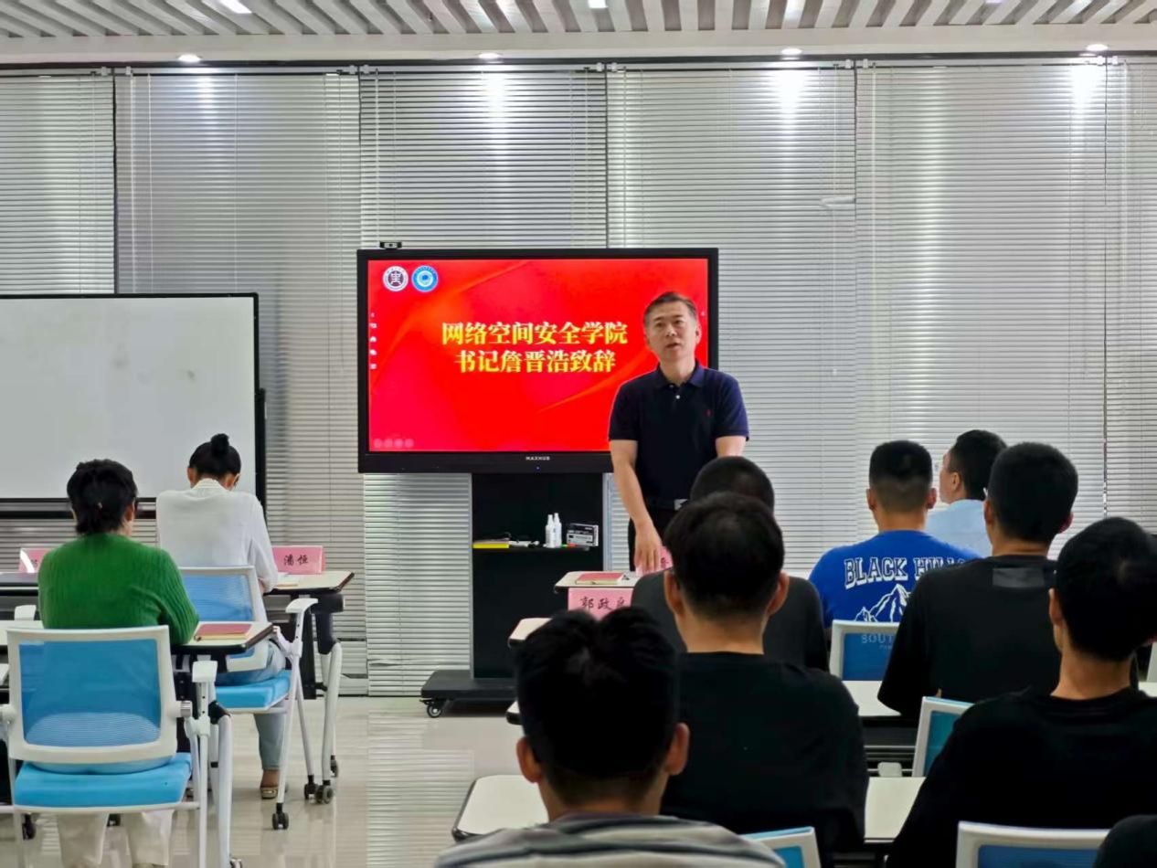 会议伊始,学院党总支书记詹晋浩代表学院致欢迎辞。他向新生表达了热烈的欢迎与殷切的期望,希望大家珍惜研究生阶段的宝贵时光,树立远大理想,培养责任担当,在网络安全领域书写青春篇章。