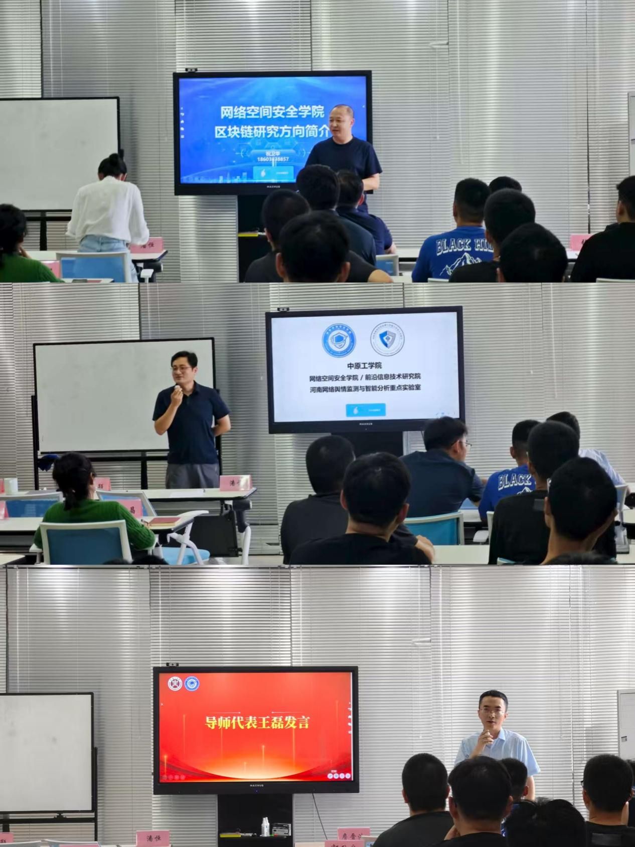 在导师代表发言环节,祝卫华老师介绍了学院在区块链方向的研究现状与发展前景,张龙老师分享了网络舆情方向的研究重点与应用价值,王磊老师则对先进计算方向的科研进展与未来趋势作了详细解读。他们的分享为2025级新生指明了学术方向,明确了学习目标,注入了前进动力。