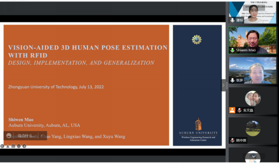 7月13日上午,应我校前沿信息技术研究院邀请,美国奥本大学毛世文教授以腾讯会议形式,为我校师生做了题为“Vision-aided 3D Human Pose Estimation with RFID: Design, Implementation, and Generalization”的学术报告。讲座由前沿信息技术研究院副院长潘恒主持,前沿信息技术研究院及相关学院师生在线聆听了报告。