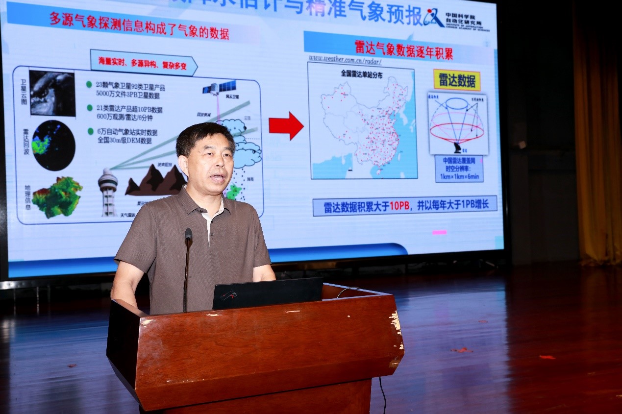 张文生作题为“大数据时代‘结构+统计’机器学习”的报告,分析符号学习和统计学习的理论契合点,介绍符号与统计知识表示的语义模型,并分享团队利用“结构+统计”机器学习在气象预测方面的研究成果。