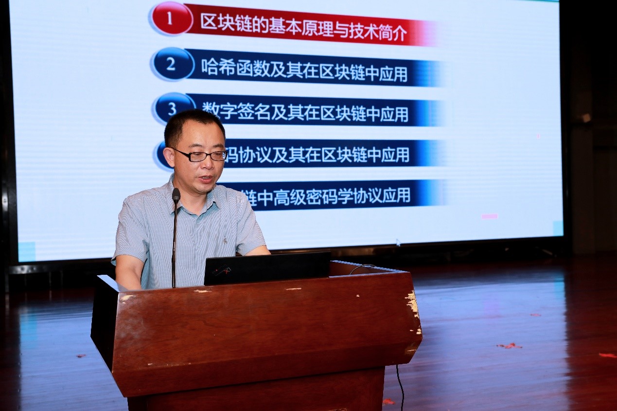 伍前红作题为“区块链密码学技术浅析”的报告,讲解区块链的基本原理,讨论哈希函数、数字签名和密码协议在区块链中的应用,并介绍了区块链在可验证延迟函数、保密交易及时空证明协议等高级密码学中的前沿研究成果。
